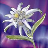 Огни, Космические и Земные, приветствуют Радомира, ликуют, искрятся и поют. Нам слышен их чистейший, хрустальный перезвон. Всё многомерное пространство Храма звучанием небес наполнил он. А эдельвейсы долины Каракольской, как маленькие колокольчики, откликнулись в ответ, звучат, как звёздная капель, и посылают всем Огням свой удивительный серебристый звёздный свет. От звона эдельвейсов и тоненьких лучей их серебристых Шар огненный как будто пробудился. Мы видим чудо: Алтарь, как бутон волшебный, вдруг раскрылся, и перед нами Эдельвейс - сияющий, живой, с росой на лепестках, с Огнями в центре - проявился. (Рис. 6. Эдельвейс.)