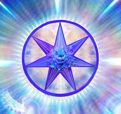 (Описание символа: Над самым Алтарём возникает образ Эльфийской Звезды - символ духовной родины Радомира. А в центре неё испускает свет Голубая Роза Сириуса. Сфера, сотворённая из голубых энергий вокруг Звезды, наполняет пространство материнской любовью.) (См. Справка 5. Сириус.)