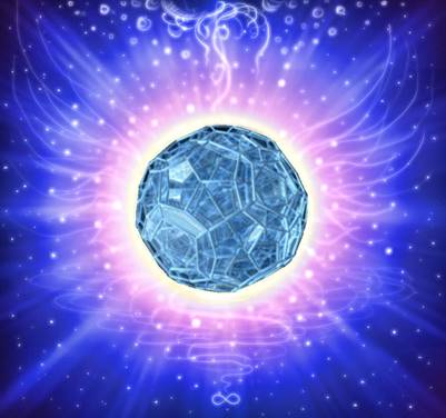 И вот над Алтарём с Огнями вновь свет ясный засиял. Ликуем мы, все радуются в Храме: пред нами в новом виде Радомир предстал - как совершенной красоты живой Кристалл: сияющий многомерный додекаэдр, а в глубине его мерцает икосаэдр.(Рис.8. Преображение Радомира.)