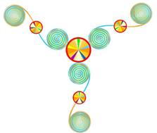 Божественные золотые потоки излучаются от вращающегося вихря, охватывая землю и соединяясь с Кристаллической Решеткой. Каждый из 12 сжатых образцов установлен к одному определенному аспекту 12 главных пятиугольных поверхностей додекаэдра, и затем к следующему, в последовательности от 1-1-1-до 12-12-12.