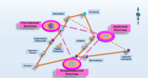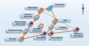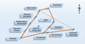 Схема расположения Магнитов городов Золотого Кольца изображена на Рисунке № 14.
