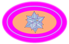 Эта форма для Центрального Магнита выбрана неслучайно. С одной стороны, реализуются все свойства икосаэдра. Но за счёт его усложнения до звёздчатой фигуры, достигается полное преображение всех приходящих информационных потоков. Смысл этого преображения в том, чтобы каждый из Магнитов Золотого Кольца получил пакеты энергоинформации со спецификой своего функционирования. Это достигается не только структурой Центрального Магнита, но и его особой динамикой, которая существенно преобразилась после перепрограммирования. Звёздчатая форма этого Магнита обеспечивает связь с космическими каналами, идущими через Баэллады. В том числе с момента перепрограммирования обеспечивается устойчивый контакт с прогрессивными цивилизациями 6-го измерения и Атлантическими Мастер-Кристаллами.