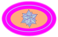 Меня интересовал вопрос, каким образом соединится с Магнитом голограмма Магнитов Аримойи. Я увидела, что Хранитель, этот тор с эллипсным сечением, расширился, пропустил голограмму. Голограмме очень легко совместиться с данным Магнитом, потому что его форма додекаэдр, и там все додекаэдры. Додекаэдр данного Магнита Нижнего Новгорода соединился очень легко с центральным додекаэдром Магнитов Аримойи. И далее Хранитель Арварион снова приблизился, как бы их опоясал, и стал излучать радужные потоки света. Они