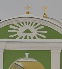 Фото 6, 7. Сферы и треугольники - элементы, замеченные нами во многих строениях монастыря.
