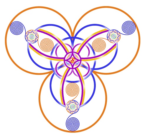 Всегда привлекайте Аримены в те точки символа, или структуры, которые связаны с творящими свойствами Высшей Стихии Время. Чтобы облегчить вашу задачу, я предлагаю для обозначения действия Арименов, а, следовательно, Стихии Урусвати, использовать символически три Белые Розы, соединённые своими стеблями золотой сферой (Рис.2.).