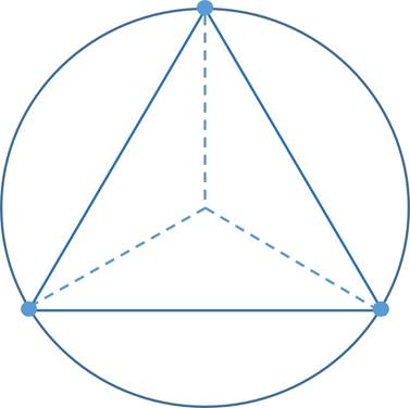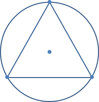 Друзья, вы уже начинаете понимать, что равновесного состояния можно достичь только в том случае, когда центр треугольника совпадёт с центром круга. Значит, мы можем говорить только о равностороннем треугольнике (Рис.5.).