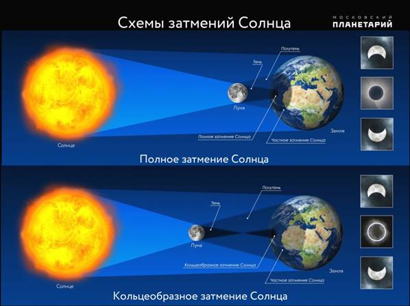 Рисунок № 1. Схемы затмений Солнца.