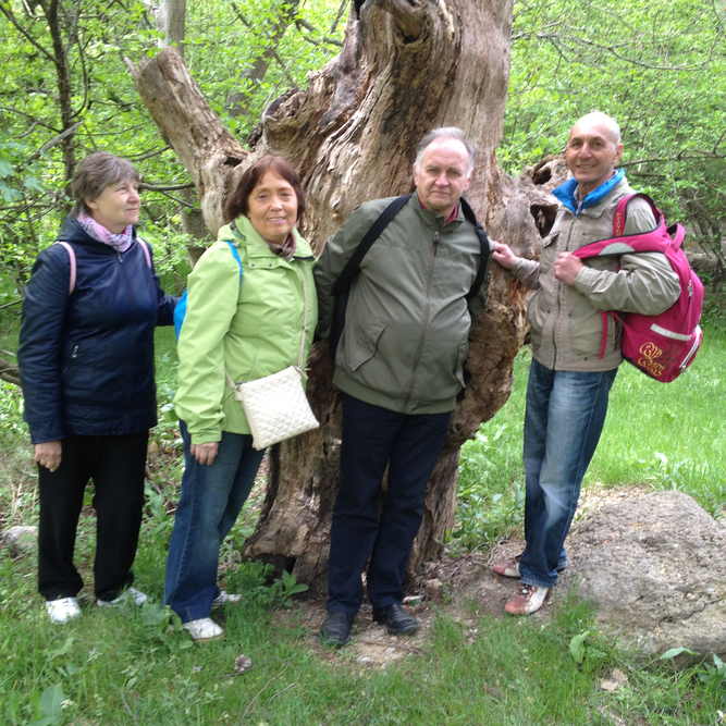 Вдоль Царской тропы растёт много интересных и необычных деревьев. Неоднократно нам встречалось дерево, которое называют «бесстыдницей». Только зимой оно одето в пальто-кору, всё остальное время года голый ствол. Но самым удивительным было то, что ствол и ветви этого дерева были закручены в спираль. Идём и дышим, и наш процесс через общение, дыхание подходит к завершению. В какой-то момент каждый прочувствовал – на сегодня всё. А что это всё. Мы проникли вглубь рода Романовых: царей, бояр и кем они были ещё с испокон веков. Энергии очищения, трансформации входили в генетические структуры рода. Убирали искажения намеренные и ненамеренные. Новые энергии Света Истинного Творца входили в геном рода.