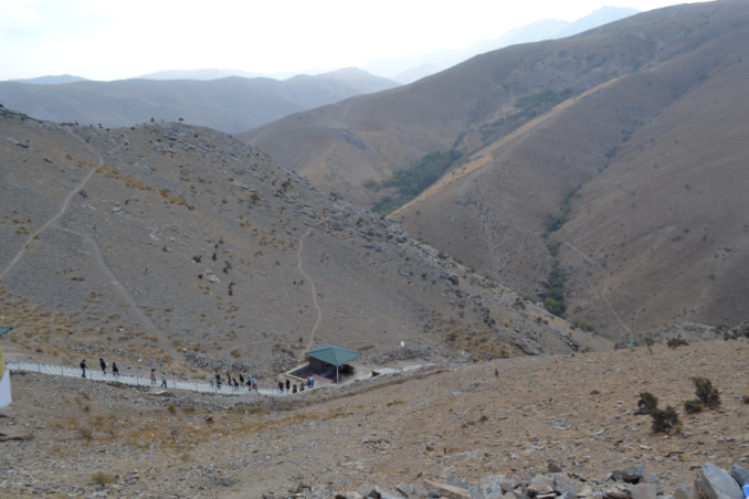 Все время пребывания в Самарканде наша жизнь развивалась по сказочному сценарию: что пожелаешь – бери, уже готово! Вот и здесь было также. Мы с частыми остановками (от усталости) и с такими же частыми созерцаниями красот гор и открывшихся взору долин добрались до пещеры. Обычно люди ждут своей очереди под открытым солнцем по 4 часа. И это с детьми самого разного возраста; много было в этот раз семей с грудными детьми. Мы же не ждали и получаса. Ну а в пещере нас, вообще, после молитвы муллы оставили с гидом одних, остановив поступающий поток людей. Мы пребывали там в молитве о желаниях и в молитве о прощении.