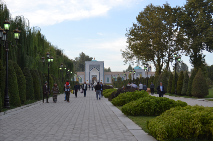 Столько торжества, тишины, почтения и изливающегося почитания я мало где встречала. Мавзолей предстает во всем великолепии своей восточной архитектуры. Как я уже упоминала, все подобные места обустроены с размахом, большое пространство парковой зоны. Оказывается в наиболее активные туристические месяцы все занято паломниками, гостями, туристами и узбекскими, таджикскими жителями обязательно. Часто посещают подобные места для исполнения молитв президент и его команда. И это тоже норма для этих мест.