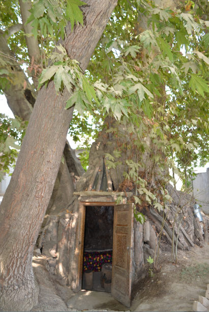 «Среди прочих выделяется дерево-гигант, настоящий титан, обхват ствола которого свыше 16 метров. Самое интересное находится в дупле платана - за резными дверьми скрыта комната с минималистическим набором мебели, при этом чинара жива и продолжает расти. Когда-то давно внутри дерева располагалась школа суфийского ордена, она являлась прибежищем не одного поколения дервишей. Ступая в ворота сада, гость оказывается в сказочном мире с неповторимой аурой, будто бы в другом измерении. Первое, что вы чувствуете – это благодать, которую дарит незаурядная атмосфера священного для мусульман места. Памятуя о тысячах молитв, произнесенных здесь за долгую историю его существования, можно вообразить, откуда появилась особая энергетика рощи, ощущаемая метафизическими струнами души. Множество людей со всех концов Центральной Азии приезжали и продолжают приезжать сюда за покаянием и исцелением. В «Чор-Чинор» приходят со своими проблемами в поисках умиротворения, и за частичкой мудрости этого места. Причем, посетители – представители совершенно разных конфессий, вне зависимости от статуса и социального положения.»