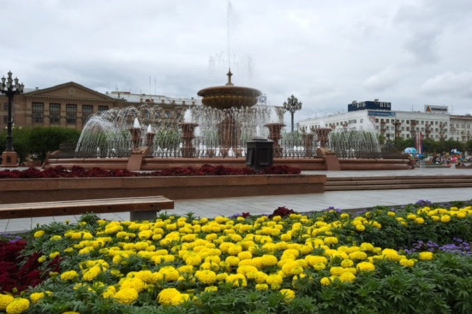 Присела у фонтана в направлении знака «Нулевая точка автодороги «Амур». Цветок Нового Пространства-Времени проявился в этом месте, севернее от знака. Хотя вначале квантово якорила энергии на фонтан.