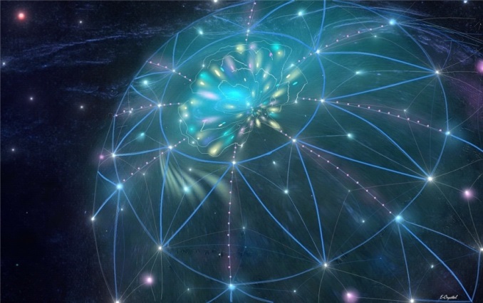 Появились четыре сверкающие точки, которые соединились тоненькими линиями в конфигурацию ромба, объединив четыре планетарные зоны. Затем ромб обретает объёмность, формируются грани, проявляется как прозрачный кристалл, вытянутый по горизонтали. Он выглядит как два тетраэдра, соединённые основаниями, где линия соединения и есть выстроенный нами канал связи энергетического центра планеты и её Кристаллического Центра. Кристалл начинает медленно вращаться по горизонтальной оси...Эманации нежнейших световых оттенков наполняют пространство ....интенсивность свечения в разные стороны – отличается.. Я благодарю всех, кто помог нам в таких условиях выполнить работу..