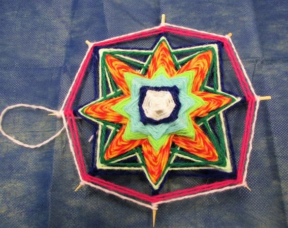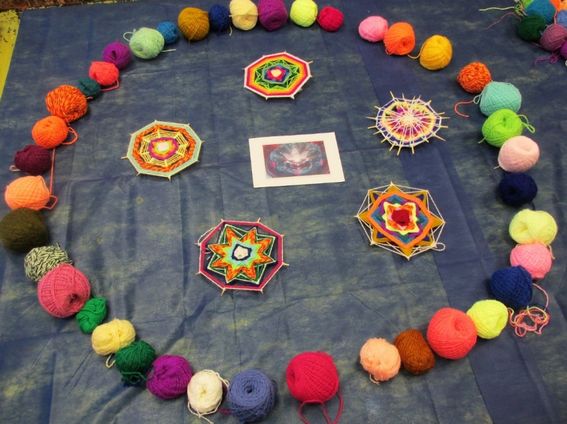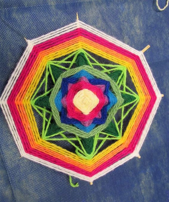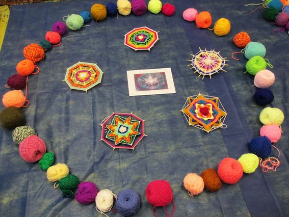 Людмила рассказала о Мандалах, что они значат, их сакральный смысл. Рассказала о способах и техниках плетения, о количестве лучей в мандалах. Перед тем, как плести мандалы, я предложила, что вкладывать в моменте творения будем наши наилучшие намерения и пожелания. Так как потом мы их соединим в один рисунок – мандалу группы. И все, что мы выскажем, будет достоянием всей группы.