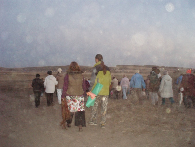 Следующая поездка на Аркаим в 2013 году ознаменовалась другим чудом: приехали мы с Новосибирской командой на осеннее Солнцестояние в сентябре, было очень холодно. Семинар Ирины Журавлёвой мы проводили в музее на Аркаиме. К вечеру, когда семинар закончился, ещё более похолодало, дул сильный ветер, в добавок ещё и дождь пошёл. Наша установка была такая: мы, Новосибирская команда, ежедневно, после окончания семинара, выполняли свою Планетарную работу на определённой горе. И в этот вечер, несмотря на холод, ветер и дождь, мы пошли выполнять Световую работу на гору Шаманка.