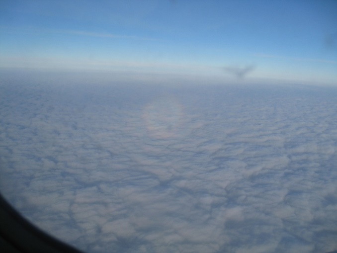 В 2012 году повторилось это диво, при полёте на семинар Крайона - нас опять в Питер сопровождала Радужная Сфера! Я опять сфотографировала Сферу, но на этот раз, кроме Сферы, на фото никого не было (птиц на этот раз на фотографиях не было.) А чувства сказочного счастья повторились!