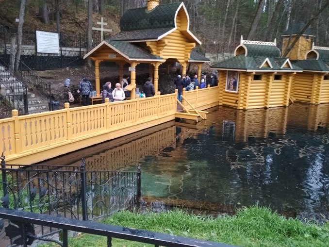 После обеда едем на чудотворный исцеляющий Святой Источник Серафима Саровского. Зашли в уютную деревянную часовенку, затем в Источнике набрали Святой водицы. Там же находится открытый бассейн-купель. Желающих окунуться в ледяную воду считанные единицы. Мне очень захотелось подойти к самой купели и умыться. Подхожу не спеша, осознанно, вешаю сумки на перила… и вдруг, с головой улетаю в эту купель, не успевая ничего понять. В голове только одна мысль: - «Какая приятная Вода! Нежная, тёплая и мягкая!» Если бы перед нами не купались двое мужчин с криками и прибаутками, насчё т холодной водицы, я бы подумала, что источник теплый…