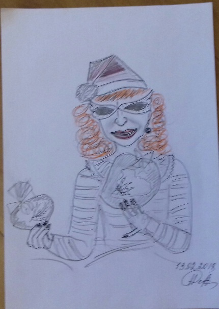 «Ну, классно»,- думаю я. «Решено. Размещаю рисунок в группу». А он опять, этот мой саботажник: «Что?? ЭТО разместить в группу??? Там такие шикарные Автопортреты». «Ну и что. А я что-нибудь напишу к моему шедевру. Например, что это мой первый Автопортрет… в общем оправдаюсь чуток»,- размышляла моя вторая часть. Я села, написала «сопровождение» своему Автопортрету и дрожащими руками, но с Любовью, отправила его в Группу. И сейчас я благодарю всех участников проекта творческие Мастерские за поддержку, тёплые слова: и про то, что любят рыжих, и про чудную шапочку. Я уже посмотрела на свой первый Автопортрет другими глазами. Какая же я там хорошенькая.