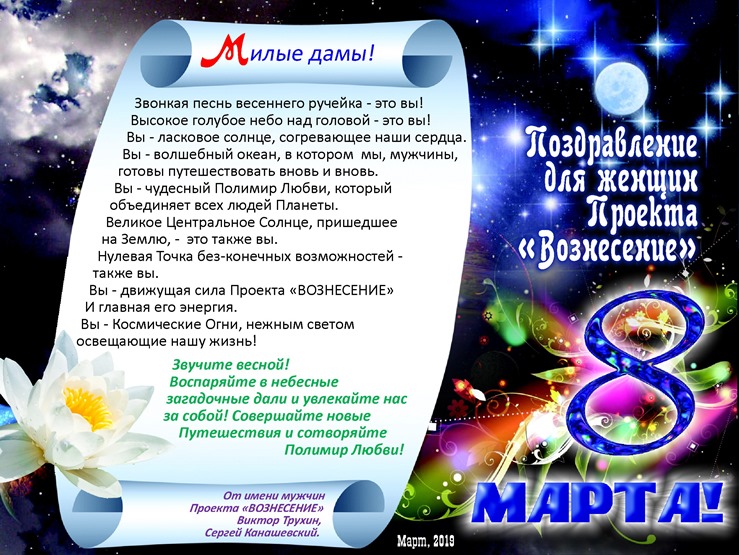 Поздравление 8 марта - женщинам Проекта ВОЗНЕСЕНИЕ