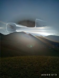 Во время одной из медитаций на этом холме Наталье Некрасовой удалось сделать снимок мощного Портала, открывшегося во время нашей световой работы. Белуха приняла нас и благословила. Через этот Портал выстраивалось единое пространство творения людей Земли (нашего Коллектива), сил Священной горы Белухи и представителей Ориона.