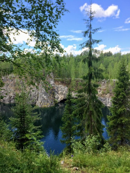 До Рускеалы проехали 300 км. Места восхитительные! Остановка у водопадов, обратили внимание, что зелень деревьев в Карелии яркая и светлая как в мае месяце, будто здесь весна в июле. Подумалось, что нас ждёт в Рускеале? Заданности не было. Пошли размышления на тему: « Парк". П-ар-к—пространство связи с энергией внутреннего Солнца Земли, а через это Солнце и со всеми солнцами Вселенной.