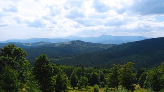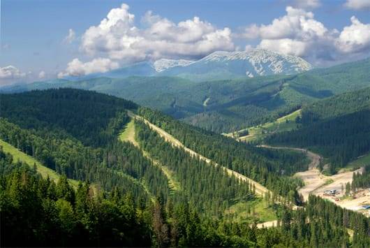 Вид с горы Буковель в сторону г. Говерла. На всей этой территории проходила работа