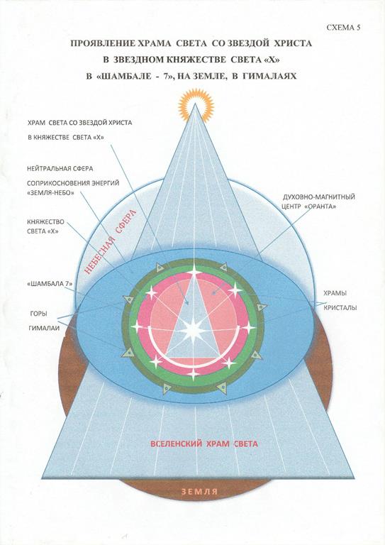 Х р а м С в е т а со З в е з д о й Х р и с т а, проявленный в Звездном Княжестве "Х" в Гималаях, в "Шамбале-7", имеет божественную, "видимо-невидимую" форму, приемлемую для людей через цветовое сияние и ощущение особых вибраций (подобное "Северному Сиянию").