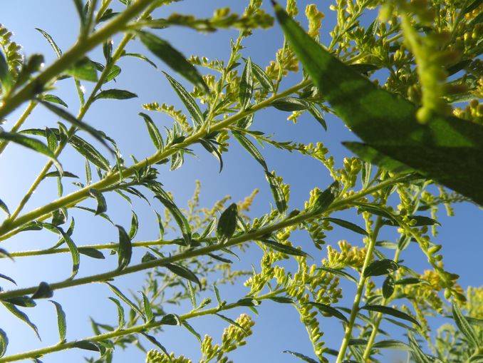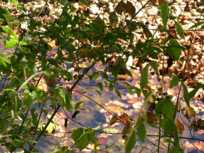 На зелёном фоне - далёкие травинки. Кажется, всё близко. А это фото другого берега речки.
