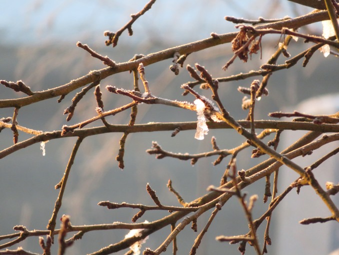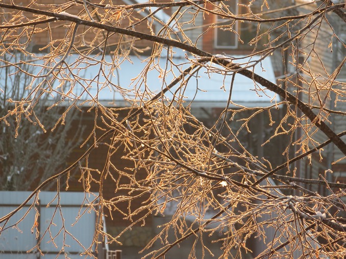Золотой Рассвет нового Золотого Дня. Новые очертания, невероятные оттенки. Обыкновенная вода, застывшая ночью, рождает удивительный свет. Вот почему так? То же солнце, тот же лёд, те же ветки, даже тот же ракурс …. А цветовое наполнение совсем другое! Даже фотокамера это может зафиксировать!