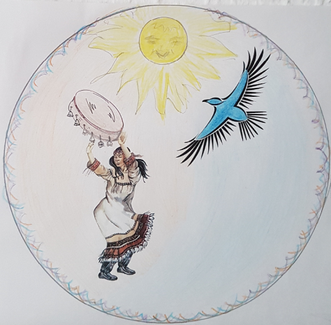 В Пространстве Тургунды проявляется Богиня Умай в образе Шаманки с бубном. Она горловым призывным пением пробуждает Беловодье, открывает нам путь к Храму...