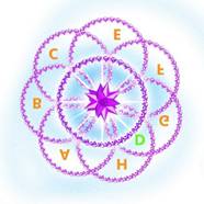 Мы видим Землю со стороны, всю планету, наш глобус, видим, как вокруг него, соприкасаясь, взаимопроникая, кружатся ещё 7 глобусов, создавая великолепный живой Цветок Жизни. Глазами Творца мы смотрим на этот чудо-цветок, украшение всей Галактики, любуемся его красотой. Нам становятся видны связи между глобусами, между Храмами ОВ, между Ядрами Стихий глобусов.