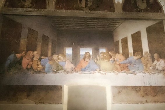 2) Рассказ о фреске Леонардо да Винчи «Тайная вечеря» и ее посещении. Передача энергий фрески (Ведущая - Светлана Драчёва). Для вашего удобства публикуем фотографию фрески, сделанную в сочельник 6 января в Храме Санта Мария делле Грацие в городе Милане.