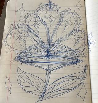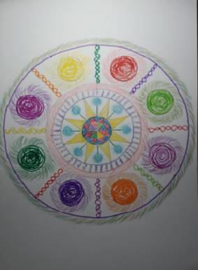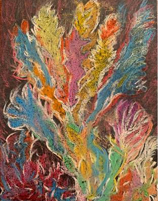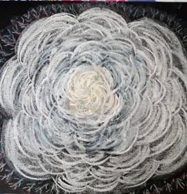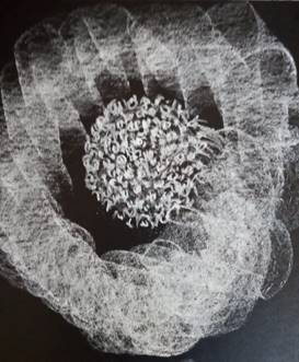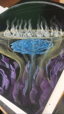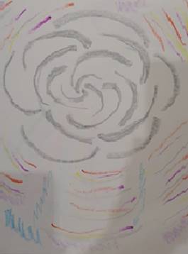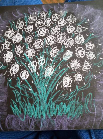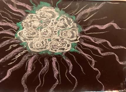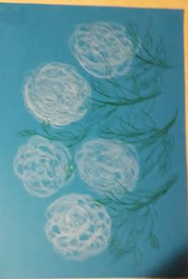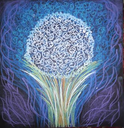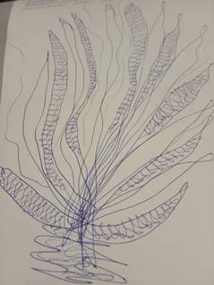 СВЕТЛАНА: Мне идет какой-то очень интересный образ. Он так формирует энергии, и энергии формируются в виде какого-то с начала облака, или, какой-то вот… Как будто энергии начинают вырастать… Как будто это на дне морском и вырастают растения. Это очень похоже на тот цветок, который я нарисовала после второго этапа нашего десятилетия. Вот, точно. (Светлана показывает свою картинку).