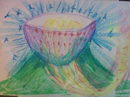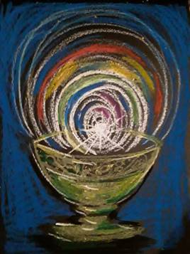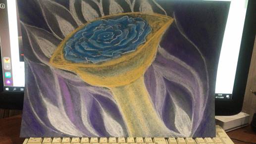 Сейчас увидим Чашу с Голубой Розой Галактики, нарисованную Виктором Трухиным в журнале « Мировой ченелинг». В этой Чаше Фиолетовый Огонь, в этой Чаше наши символы.