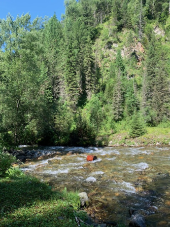 Давайте мы с вами объединимся в Единое Сакральное Сердце. И мы с вами переносимся на Алтай, вот к этому прекрасному пространству. Можно поместить это пространство в наше Единое Сакральное Сердце и свое собственное. Видите, какой прекрасный летний день, тепло, хорошо, прекрасная свежесть идет от этого ручья, птицы поют, бабочки летают (бабочки там постоянно на нас садились), то на шляпу, то на курточку сядут, все очень красиво. Вокруг много лесной клубники, и мы ее кушали. И голубое небо и на нем появляется символ озера.