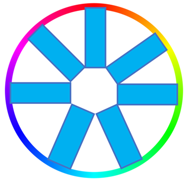 Итак, у нас с вами есть пространственно-временной световой инструмент АН-НА-ДО-ЛУ, который имеет определённую форму. Теперь познакомимся с тем, как он выглядит. Проявляется он в СФЕРЕ (Ред. Сфера символизирует Нулевую Точку), поэтому для удобства его заземления, давайте нарисуем окружность и поделим её на СЕМЬ горизонтальных секторов (Ред: на рисунке сектора изображены голубым цветом).