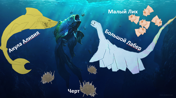 Света: Подводные у них такие огромные! Просто не знаю, как объяснить. Сейчас даже посмотрю. Можешь показать? У них иногда страшно бывает, иногда очень большие, иногда миленькие. Вот как раз один такой, похож на нашего кита, но он другого цвета, жёлтого.