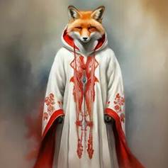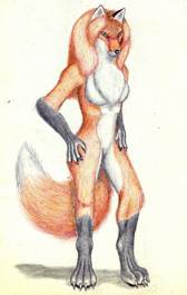 Наташа: Я вижу представителя Звездного рода Хитрых Лис. У него есть руки действительно как лапы, но они стоят на ногах. Ноги полусогнуты. Тело похоже на человеческое. Голова лисья. Есть одежда.