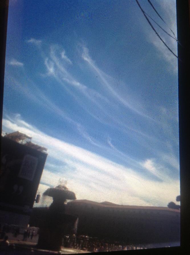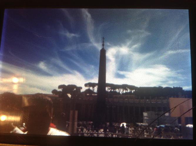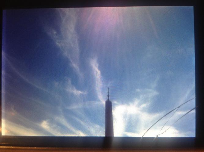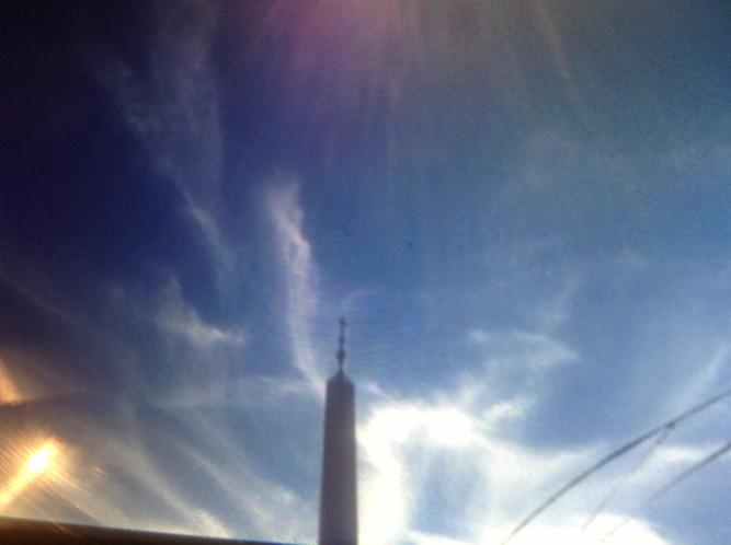 Они поочередно мне передавали, чтобы я расслабилась и не волновалась. Николай Угодник сказал мне сделать круг по часовой стрелке на площади у Собора Св. Петра, а затем, когда все будут слушать историю, выстроить семь мостов от купола. Если бы вы видели, Татьяна, какой в тот момент был рисунок на небе!!! Как салют, как стрелы, я сфотографировала. Потом мне было сказано, что и на этом работа не закончена, и я должна выйти на связь непосредственно из Храма. Там мне постоянно напоминали дышать, дышать..., при этом дыхание у меня было глубокое, ровное и радостное! От жары 36 градусов мне было в Храме неважно. Но я слышала: не волнуйся, всё под контролем, мы с тобой и работаем, и контролируем (я ощущала как будто охлаждение над головой). Потом про меня как бы забыли, на выходе из Храма я обратила внимание, что рисунок на небе исчез, и оно просто голубое. Я расстроилась и подумала, что, наверно, не так работала .