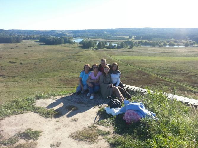 На холме Миндовга произошла смешная история с невестой. Это была суббота, в храме шло венчание, пары подъезжали одна за другой. Одна из пар уже гуляла по холмам и фотографировалась на их фоне. Валера в шутку бросил — запоминайте, где сидит невеста. Кто хочет выйти замуж — надо сесть на это место. Все посмеялись, но время от времени Валера напоминал нам об этом. Мы стали поглядывать на невесту, а пара явно не собиралась покидать холм, они расстелили покрывало, принесли корзину с едой. Мы ходили кругами, но вот как только молодожены встали и пошли фотографироваться на другое место, на покрывале остались сидеть их друзья-свидетели. Я решительно подошла и спросила — а можно мне присесть на ваше место? Свидетель не понял, он растерялся, стал уточнять, чего я от него хочу. Мне на помощь пришла Рая. Она перевела мои слова на английский язык. Увы! Молодое поколение Литвы русского языка не знает. Я продолжала объяснять — существует примета — если хочешь замуж, то надо посидеть на месте невесты. Все рассмеялись, и они любезно уступили мне место, даже не стали убирать покрывало. Я не только села, но и улеглась комфортно и запустила в информационное поле, проговорив очень громко: хочу мужа! Смех - смехом, но моему примеру последовали и другие..! Настроение у всех улучшилось.