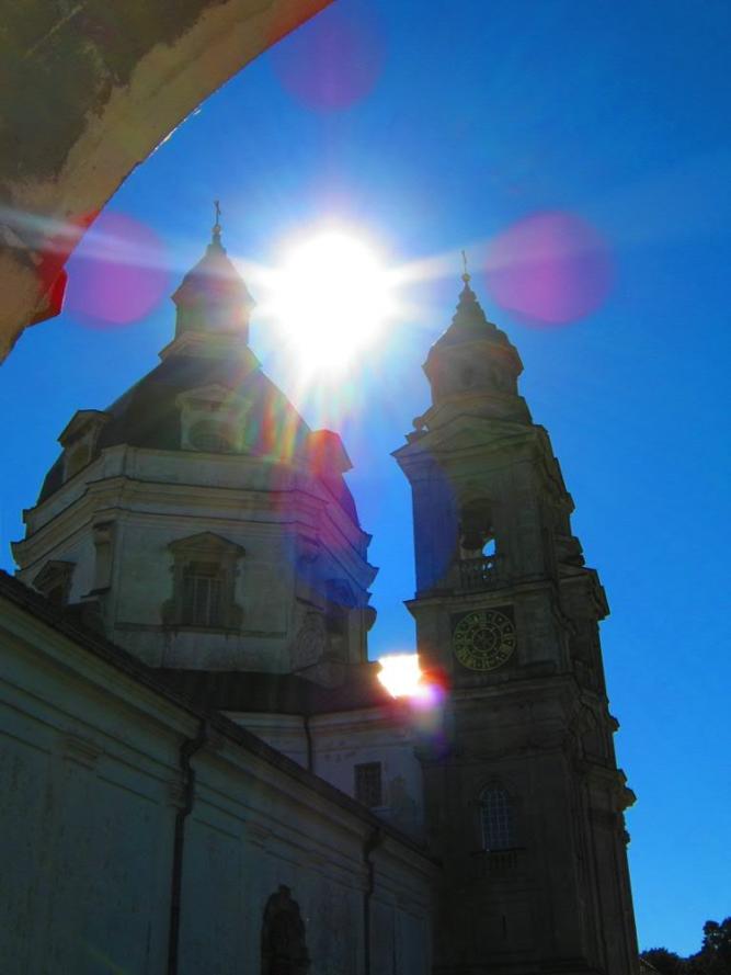 Второй холм называется Сенполио, холм Предков. Здесь мы провели работу по освобождению душ наших Предков. Людмила начала читать молитвы славяно-ариев, во время чтения на тонком плане появился факел огня, языки пламени раздувались на ветру, который шел со стороны католического храма, как будто ветер хотел потушить пламя энергий РОДа нашего, но ему это не удавалось. Появился щит, с изображенным на нем ведическим знаком — коловратом. Лучи развернутые против часовой стрелки. Щит приподнялся, как бы открывая Портал и из него стали выходить души. Вся группа увидела, как стало подниматься очень много душ. Внизу Портала было темно, а потом там стало светлеть, из него пошел яркий свет. По радужному мосту души уходили в другие измерения.