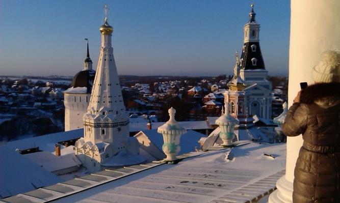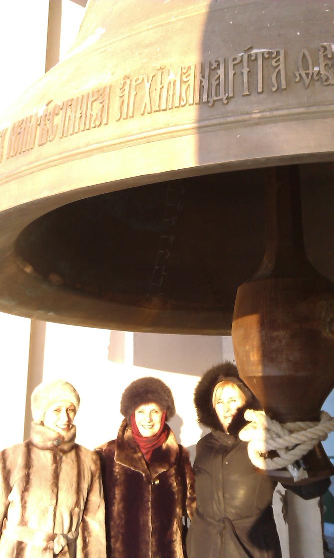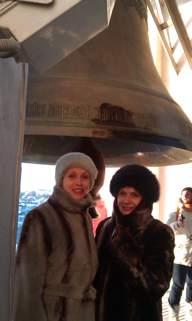 Наша группа собралась у колокольни в 16.15, во внутреннем помещении открылась боковая дверь, и мы стали подниматься по крутой винтовой лестнице….всё выше, и выше, и выше…и вот мы наверху…перед нами возникли колокола: большой и маленький…