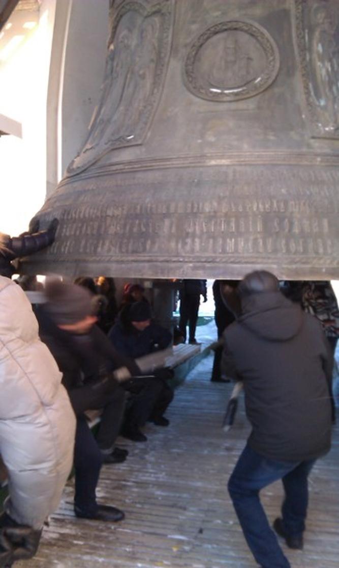 Шесть сильных мужчин начали раскачивать 2-х тонный язык Колокола….