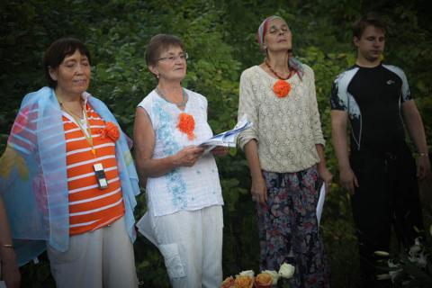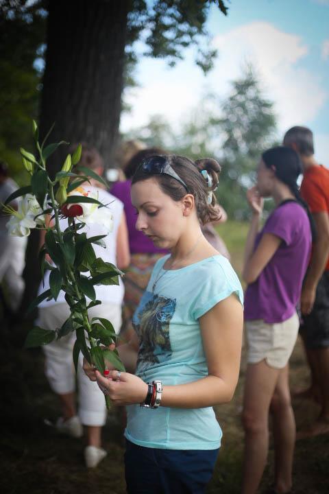Вот и 9 августа. Нас 9 человек, приехавших на московском поезде. Ждём группу из Иваново. Приближается время встречи. Я почувствовала, что группа приехала. Четыре Жрицы Огня Друидов присоединились к нам. Во мне это проявилось через Огонь Друидов, который призвал нас на сегодняшнюю встречу – сотворчество. И все Огни сразу заговорили во мне. Огонь Мелхиседека, Огонь Друидов, Животворящий Огонь, Фиолетовый Огонь, Оранжевый Огонь… Нас уже тринадцать.