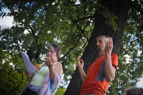 К месту церемонии мы переплываем Волгу на трамвайчике-катере. И как только вступили на землю, сразу возникло ощущение, что мы Дома. Нас встречали представители Ярославской группы «Вознесение». Мы идём по Дубовой Роще. Идёт взаимное приветствие дубов с нами. Находим место под прекрасным дубом с видом на Волгу. Подготавливаем место к церемонии. Волнение уходит. Спокойствие заполняет сердечное пространство и наполняется оно Радостью, Любовью, нежностью. Огонь во всём: вокруг меня, внутри меня. Подъезжают остальные Сотрудники Света Ярославской группы. Нас уже 20. Какая интересная цифра: приехало 13, а вместе стало 20 – 13:20. Сотворяем в канале Истинного времени. Город Света над нами. Интересно построен. Смесь православных храмов и замков средневековья. Лёгкость, Радость, пение Ангелов в городе Света. Огонь Друидов, Огонь Мелхиседека мощным потоком шли через нас. С помощью Огней проводим очищение Волги – реки Ра.