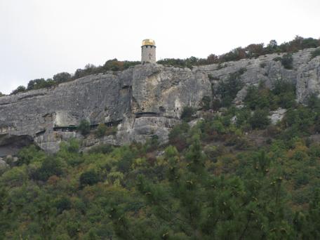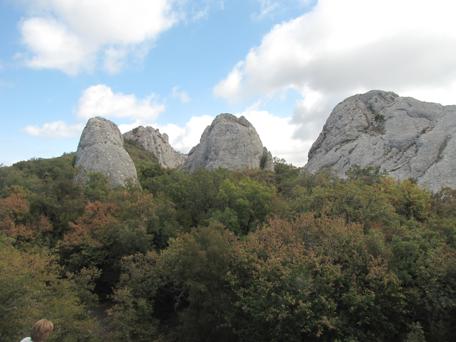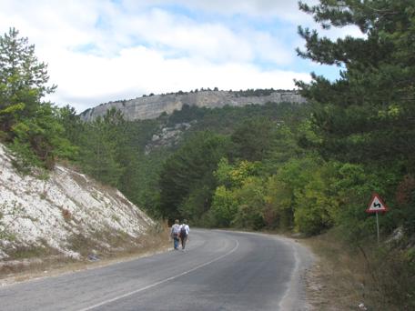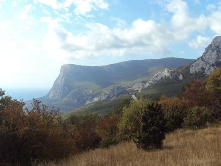 21 сентября мы начали своё путешествие в Мангуп Кале. Доехали до села Терновка, и 4 км до Ходжи-Сала мы прошли пешком. Мы шли вдоль дороги, знакомясь с миром окружающей нас природы. Долины переходили в горы. И слева по нашему движению видна гора, а на ней башня с золотым куполом-шляпой. Это гора Шелдан, а башня относится к монастырю Шулдан-Кая (перевод названия монастырь - Отдающий Эхо). Мы послали этому месту приветствие, Свет и Любовь Творца. С нами здороваются Духи гор, монастыря. «В служении Творцу, вам, людям, находимся века мы здесь. Теперь и вы несёте службу эту. Единство наше в продолжении служить и мир земной в рай Неба превратить». Мы продолжаем наш путь. И вот подходим к горе. И у каждой из нас сразу сердце подсказало, на этой горе расположен Мангуп Кале. Крепость средневекого княжества Феодоро, расположенная на плато горы-останца БабА-Даг – Отчая гора. И завтра мы поднимемся на это плато. А пока мы вошли в село Ходжи-Сала и расположились в мини-гостинице. Знакомимся с окружающими нас горами, видим различные изображения зверей, птиц и разговариваем с ними. На одной из гор видим лик Сварога. Он приветствует нас и радуется предстоящему сотворчеству.