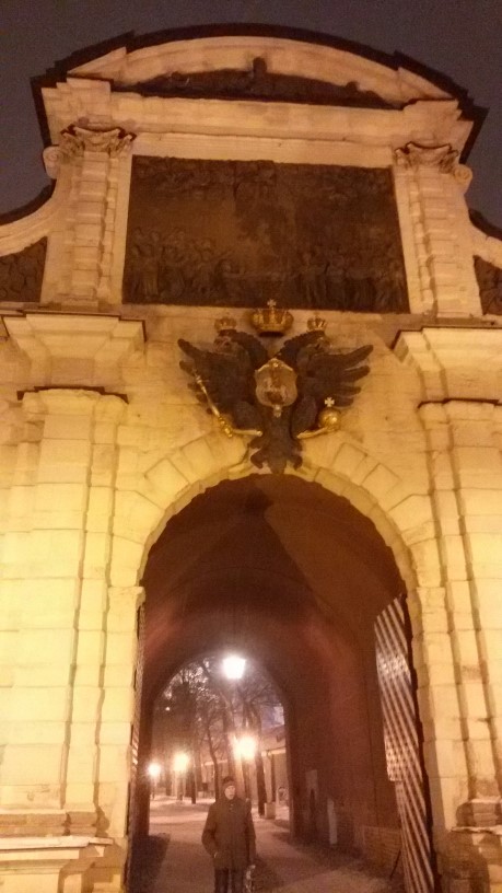 На подходе к Петропавловской Крепости мы остановились на мостике, и Виктор Николаевич обратил наше внимание на зайца, который сидит на столбике в замершей воде. Заяц – это символ Петропавловской Крепости – знание Законов Мироздания: жить по законам естества, которые в человеке на материальном уровне отображены как 5 пальцев на правой и левой руке и ноге. Петропавловская Крепость встретила нас иконой Георгия Победоносца и Гербом с Двуглавым орлом над входом. А на небе сходились лучи прожекторов над храмом Петра и Павла. Были прочитаны символы и знаки с помощью многомерного мышления Виктора Николаевича.