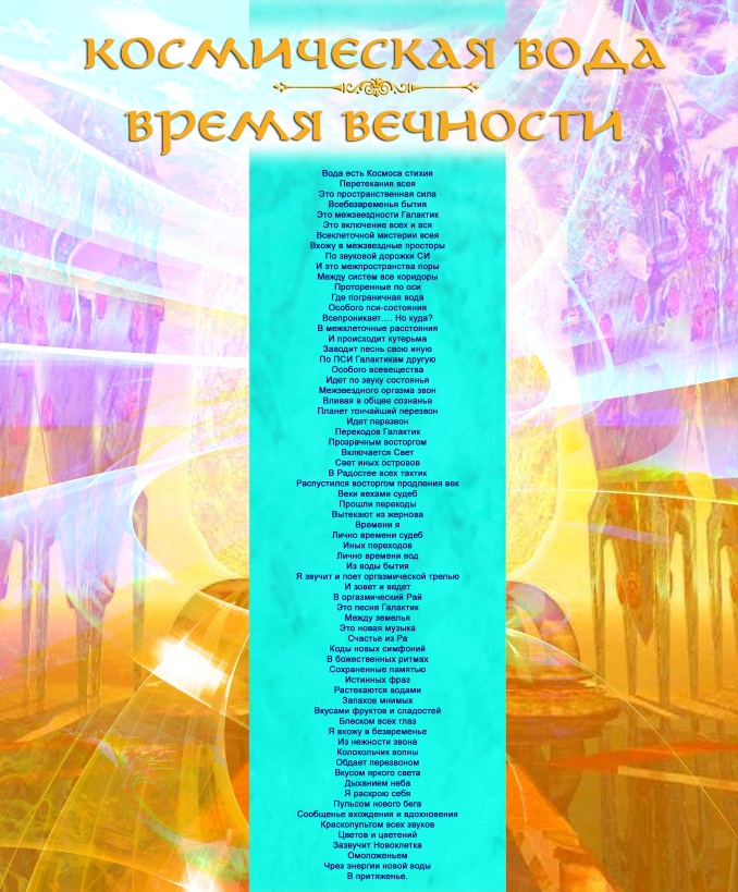 Соединение на энергиях и вибрациях РА-ШИИБА с сакральной сущностью разных видов воды позволит принять необходимые активационные матрицы и коды для дальнейшего разворачивания Тела Вечности, встраивания земного человека в жизнь космическую в кодах СВЕТА.