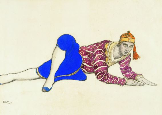 Накануне прочитала биографию художника, просмотрела ряд произведений по интернету. И я прочувствовала, что Лев Бакст – это был необыкновенный человек. Всегда в творческом порыве, потом спад, отдых. И опять взлёт. Удивительные произведения во многих областях художественного искусства. Для того времени он был человеком будущего. Человеком из пятого измерения. Вот слова из его биографии: «По сути, Бакст произвел революцию не в российском, и не в парижском театре, а в мировом театральном искусстве. Декорации, костюмы, сюжет, движение — перестали быть разрозненными частями целого, соединились и образовали то, чего не было никогда раньше».