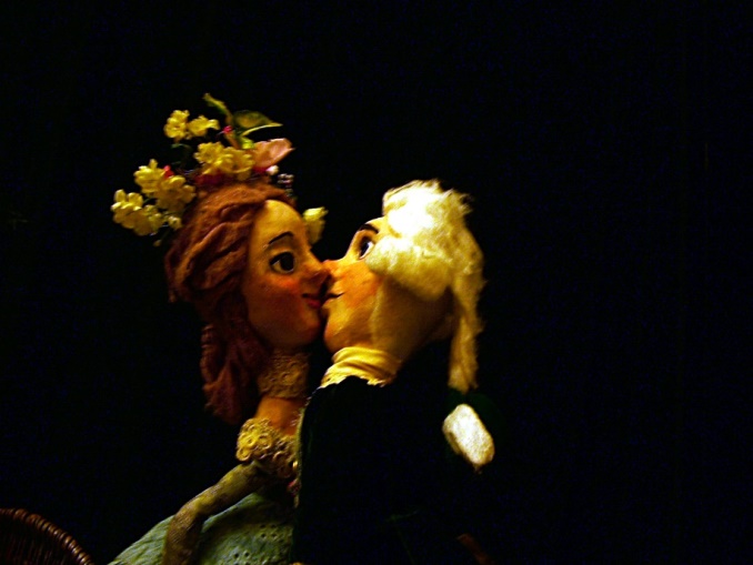 Спектакль для зрителей от пяти до ста пяти лет по мотивам сказки Г.-Х. Андерсена. Старинные чемоданы, корзины с розами, высокие пудренные парики, кукольная посуда 17 века, антикварная кукольная библиотека сказок, средневековые игрушки с блошиных рынков Европы, кукольная собачка, кукольная косточка, но страсти настоящие: расчётливость, высокомерие и глупость укрощаются любовью.